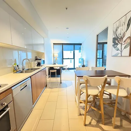 Lux Living In Heart Of Brisbane Apartment features an equipped kitchenette with an oven and a dishwasher at the guests' disposal. Eagle Street 153 bus station is approximately 100 metres away.