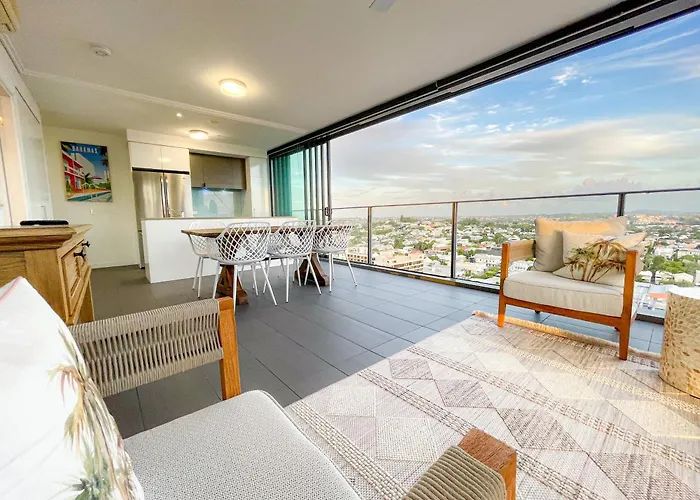 Fortitude ValleyThe spacious 82 m² The Fv By Alex 2Br Apartment Brisbane provides easy access to various city attractions, such as the listed Centenary Place Park, situated only a 5-minute walk away. Just 1.1 km…View details+More detailsCheck rates - Top-Floor Luxe Stay In The City Free Parking, Pool, Gym, Wifi