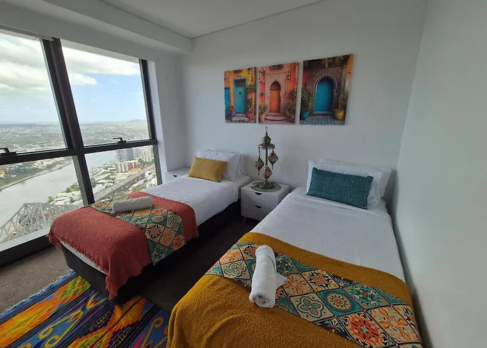 Brisbane CBDOffering a private swimming pool, the spacious Altitude Suite 2Br - Stunning Views, Pool & Parking Brisbane is located 5 minutes' walk from the heritage-listed Centenary Place Park. Wi-Fi and a free…View details+More detailsCheck rates - Indulgence At Meriton, Spectacular Views, Sleeps 6 Includes Carpark