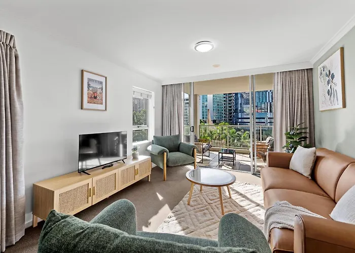 Brisbane CBDThe spacious 124 m² Spire Residences Brisbane is located in a residential area of Brisbane, nearly 5 minutes' walk from Woolworths. The apartment features a sauna to ensure a more enjoyable stay.View details+More detailsCheck rates - Elevated Cbd Living 2Br With Skyline Views