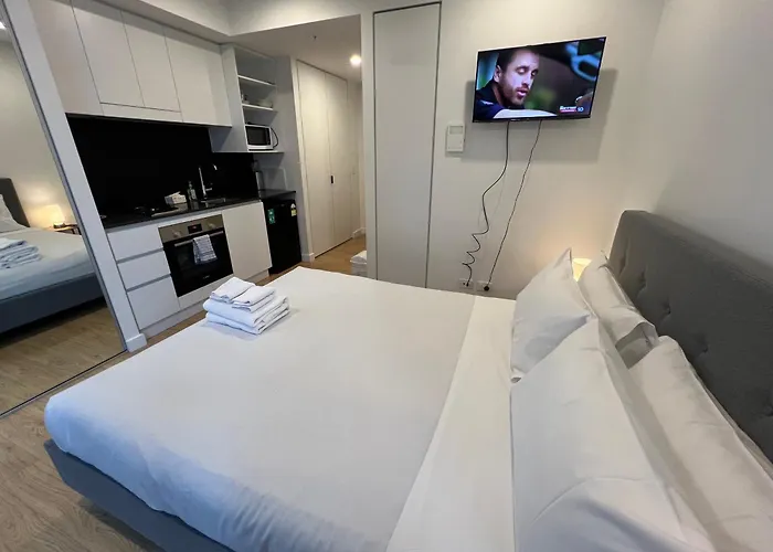 South BrisbaneThe 52 m² City Chic Living W Sunset Views 2Bd1 Studio Apt Brisbane is situated 6 minutes' walk from the Merivale Bridge and 20 km from Brisbane, QLD airport. In the vicinity of the pedestrian Queen…View details+More detailsCheck rates - Modern Compact Studio Separate Bathroom