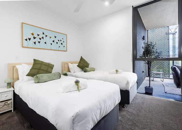 West EndSituated around 5 minutes by car from Regatta Ferry Terminal, the 120 m² Stunning Helia Sanctuary - West End With Parking Apartment Brisbane provides convenient access to numerous nearby attractions.…View details+More detailsCheck rates - Modern Luxe Urban Comfort In Central Green Heart