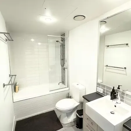 Premium Chermside Penthouse - Next To Westfield apartment is equipped with a bathroom that features a hair dryer and bath sheets. A shower can also be found.