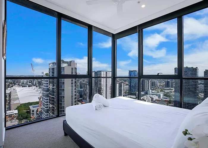 The spacious 64 m² Soaring Skyline On Southside At Resort-Style Stay Brisbane is located just 1.4 km from the Old Government House and offers spa facilities such as a Jacuzzi, a sauna, and an indoor pool. The 2-bedroom apartment is right near Brisbane Magistrates Court, and the acclaimed museum "Queensland Art Gallery" is also merely a 5-minute walk away.