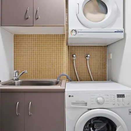 Visitors will enjoy the comfort of a bathroom with a dryer in this apartment. A separate toilet, a shower, and a washing machine can also be found.
