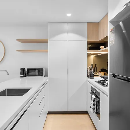 The Skyline - Brand New Queens Wharf Japandi 2Br With Pool And Gym apartment also has an equipped kitchen, fitted with an oven and a dishwasher. This property is merely a 10-minute walk from Brisbane Central train station. This accommodation has an outdoor swimming pool and a patio.