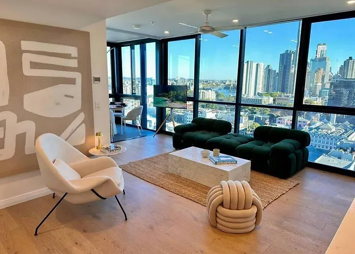 Located about a 20-minute walk from Royal International Convention Centre, the 90 m² Utopia City Oasis Exquisite Urban Retreat Brisbane apartment is 2.5 km from a top family-friendly place like the ferris Wheel of Brisbane. Offering access to a private swimming pool, this 2-bedroom apartment is in the vicinity of the Howard Smith Wharves.