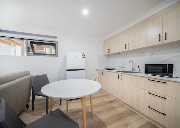 Newly Renovated Modern 2Br Self-Contained Unit Villa houses an equipped kitchenette with a fridge, a toaster, and kitchenware. Guests can try Australian dishes at The Espresso Hut, located 2.7 km away. Transportation options in the area include Turnmill Street at Dolphin Street 83 bus station, situated approximately 200 metres away.